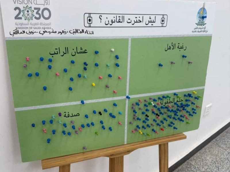 وتضمن البرنامج عدداً من الفعاليات التي شملت مسابقات وورش عمل حوارية تناولت أهمية نشر الثقافة القانونية بين أفراد المجتمع، إضافة إلى مشاركة عدد من منسوبي قسم القانون بإشراف أ. فوزية محزري و د. ملاك النعمي.