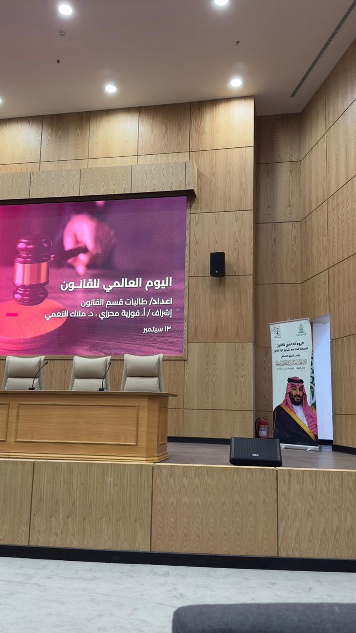 احتفت كلية الشريعة والقانون شطر الطالبات ممثلةً بقسم القانون باليوم العالمي للقانون، وذلك من خلال برنامج توعوي يهدف إلى إبراز مكانة القانون ودوره في حماية الحقوق وتحقيق العدالة.