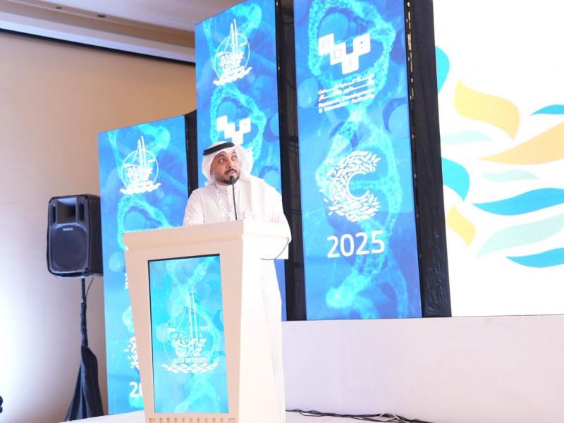 بعدها قدم عضو هيئة التدريس بجامعة طيبة الدكتور نايف المنتشري موضوع الأسباب الجينية الجديدة لسرطان الشبكية في العائلات القريبة.