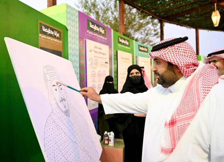 ويعرض جناح الجامعة لوحات فنية تحمل شعارات تمثل الهوية الرسمية لاحتفال الوطن بيومه المجيد “عزّنا بطبعنا”، كتعبير صادق عمّا يتميز به مواطنو المملكة العربية السعودية من طباع كريمة وخصال حميدة تمثل هويتهم الوطنية.