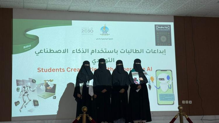 واشتملت الفعالية على فقرات إبداعية شملت إلقاء قصيدة شعرية، وجلسة حوارية، بالإضافة إلى مسرحية ."عندما طرق الذكاء الاصطناعي بابنا" جسدت رؤى الطالبات حول أثر التقنية في المستقبل.
