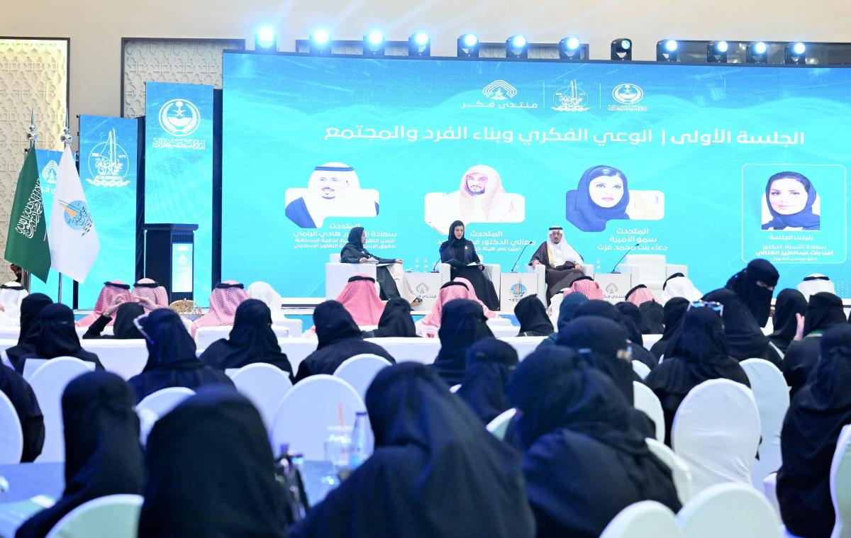 واستعرض المنتدى خلال ثلاث جلسات حوارية محاور متخصصة، حيث افتتحت الجلسة الأولى بعنوان الوعي الفكري وبناء الفرد والمجتمع، وأدارتها الأستاذة الدكتورة أمل بنت عبدالعزيز الهزاني عضو مجلس الشورى، وتحدثت خلالها سمو الأميرة دعاء بنت محمد عزت عن أهمية تحصين الطفولة ضد الانحراف والتطرف عبر برامج تعليمية ترتكز على القيم الإسلامية، مؤكدة ضرورة إبراز القدوة وتعزيز وعي الأطفال بما ينسجم مع مستهدفات الرؤية الوطنية.