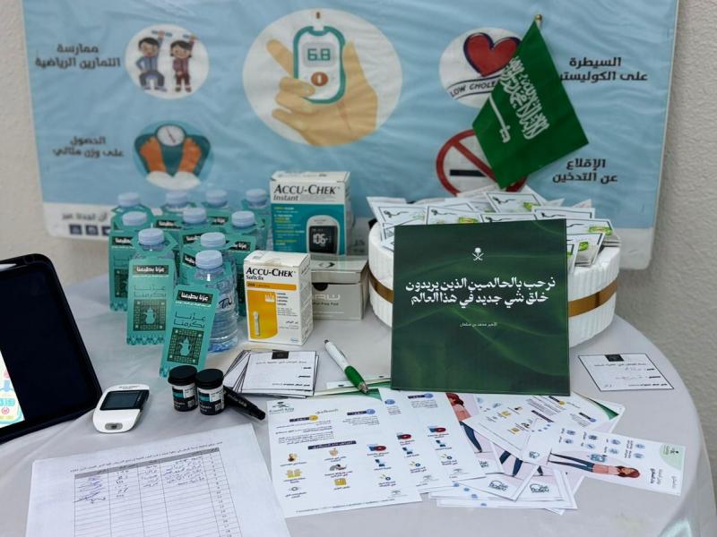 كما تضمنت الفعالية أركاناً توعوية للأمراض المزمنة مثل: ارتفاع ضغط الدم، السكري، الربو، الأنيميا المنجلية، بالإضافة إلى ركن التغذية والوزن المثالي. وقدمت الطالبات شروحاً وافية، وزودن الحاضرات ببروشورات تثقيفية.