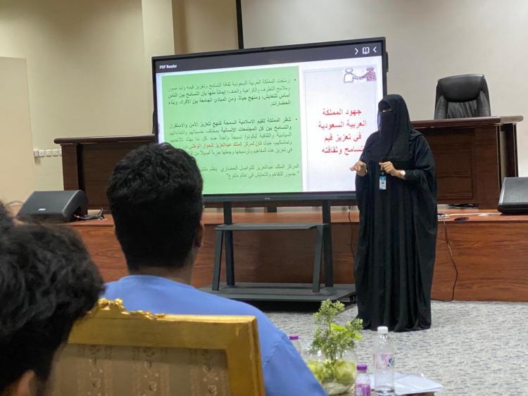 نظمت الكلية الجامعية بفرسان ممثلة في وحدة الأنشطة الطلابية محاضرة بعنوان "قيمة التسامح الإنسانية في زمن التحديات"، والتوعوية، أعدتها وقدمتها عميدة الكلية الدكتورة عفاف محمد با بعير .