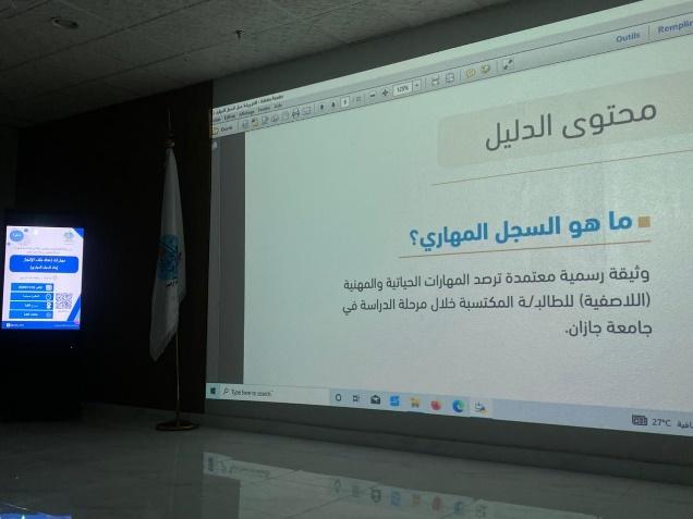 استهلت الدكتورة سعيدة محمد الزريبي ورشة العمل بتعريف "السجل المهاري"، وأهميته وأهدافه و عرض مجالاته الرئيسية (قيادة والتعليم والأنشطة الثقافية والاجتماعية والرياضية و الخدمات التطوعية و الأبحاث و الجوائز) من أجل تنمية القدرات البشرية المختلفة وتطوير المهارات الحياتية والمهنية الضرورية للطلبة التي لا يتم تعزيزها بشكل كافي من خلال المناهج والبرامج الأكاديمية إلى جانب عرض مراحل التخطيط للممارسة وحث الطالبات في الانخراط في الأنشطة اللاصفية كما شرحت طريقة الدخول على بوابة النظام الأكاديمي للطالبة وخطوات تسجيل المهارات أو الدورات وساعات العمل التطوعي في السجل المهاري، تهدف ورشة العمل إلى توعية الطالبات بأهمية السجل المهاري والعمل على تطوير مهاراتهن في جميع المجالات والمردود العائد عليهن فهو يعتبر أداة لتوثيق المهارات والأنشطة التي يكتسبونها خلال فترة دراستهن في الجامعة.