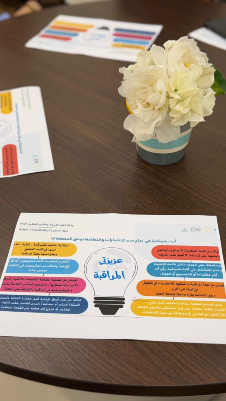 وتناول الاجتماع أبرز النقاط التي ترتكز عليها أعمال المراقبة، ومنها الالتزام بمواعيد الحضور، والدقة في تطبيق التعليمات، ومتابعة الطلبة داخل القاعات، والتعامل مع أي حالات طارئة وفق الأنظمة المعتمدة، بما يضمن توفير بيئة اختبارية مناسبة تسهم في تحقيق الانضباط الأكاديمي.