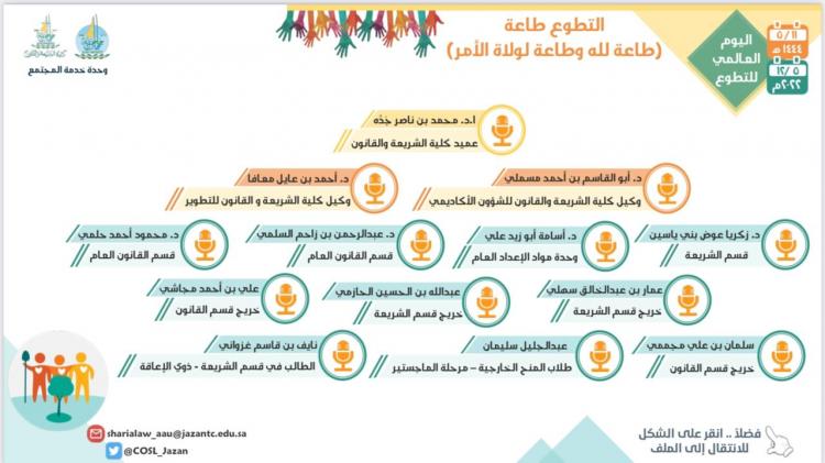 شاركت كلية الشريعة والقانون بجامعة جازان، في اليوم العالمي للتطوع 2022