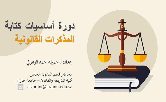 ضمن خطة وحدة النشاط الطلابي بكلية الشريعة والقانون شطر الطالبات نفذت عضو هيئة التدريس بقسم القانون الأستاذة جميلة الزهراني دورة تدريبية بعنوان أساسيات كتابة المذكرات القانونية على منصة الزوم تناولت فيها توضيح مهمة المحامي الأساسية مع التطور التكنولوجي والاقتصادي الذي كان من تأثيراته السرعة في كل شيء، إلى جانب كثرة الدعاوى وضيق وقت القاضي والمحامي على حد سواء، جميع هذه الأمور جعلت الغلبة للكتابة بدلاً من المرافعة.