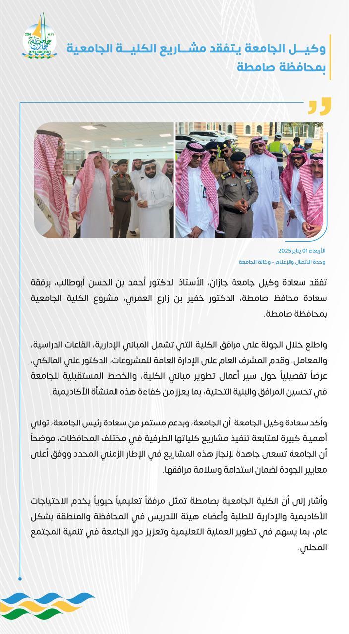 وكيل الجامعة يتفقد مشاريع الكلية الجامعية بمحافظة صامطة
