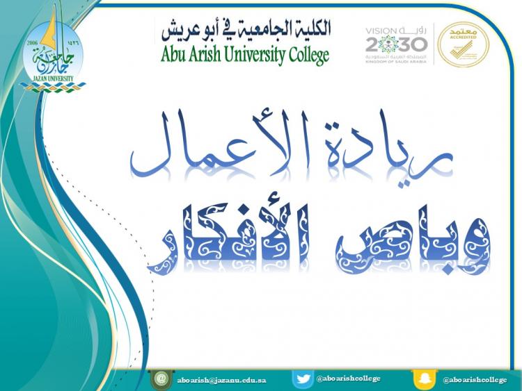 قامت وحدة الابتكار وريادة الأعمال بالكلية الجامعية بأبوعريش برفقة مجموعة من طالبات الكلية يوم الاثنين الموافق 28-2-2022م حضور فعالية (باص الأفكار) التي فعلها فريق الهيئة العامة للمنشآت الصغيرة والمتوسطة "منشآت" خلال جولتها الى جامعة جازان وذلك بهدف دعم الأفكار الإبداعية والتي تساهم بدورها في دعم الاعمال الريادية في الوطن.