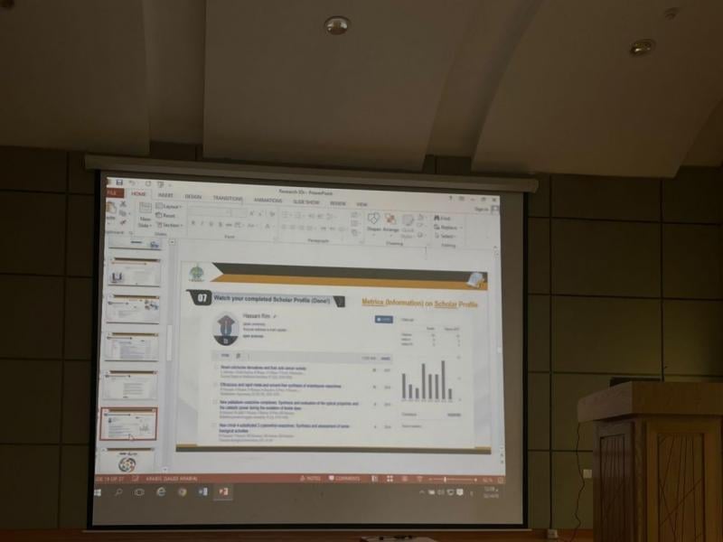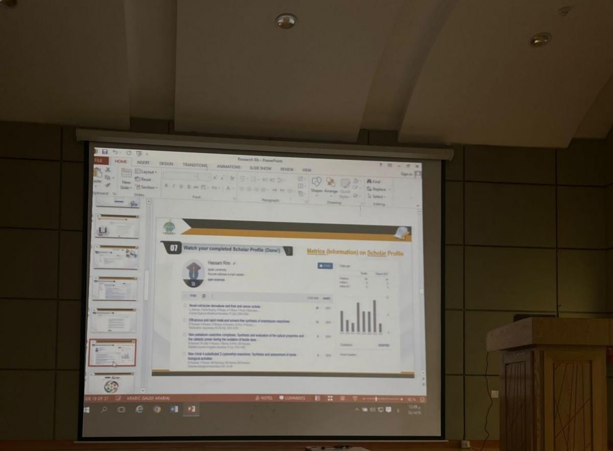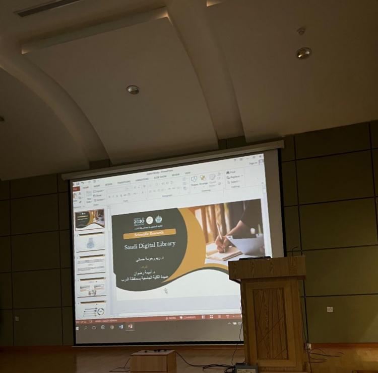 و بعد ذلك قدمت د. ريم رحومه حساني شرح بكيفيه الدخول الى المكتبة الرقمية و اعتمد المصادر للبحوث العلمية