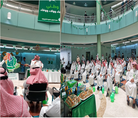 احتفالية القسم والكلية باليوم الوطني السعودي . وقد شارك أعضاء الهيئة الإدارية وأعضاء هيئة التدريس والطلاب في الاحتفال بهذه المناسبة الغالية. وتنوعت المشاركات بين عروض صوتية لبعض عبارات الحب وتصميم مقاطع فيديو وصور ورسم وتفاعل عبر الحساب الرسمي للدائرة على تويتر وغيرها.