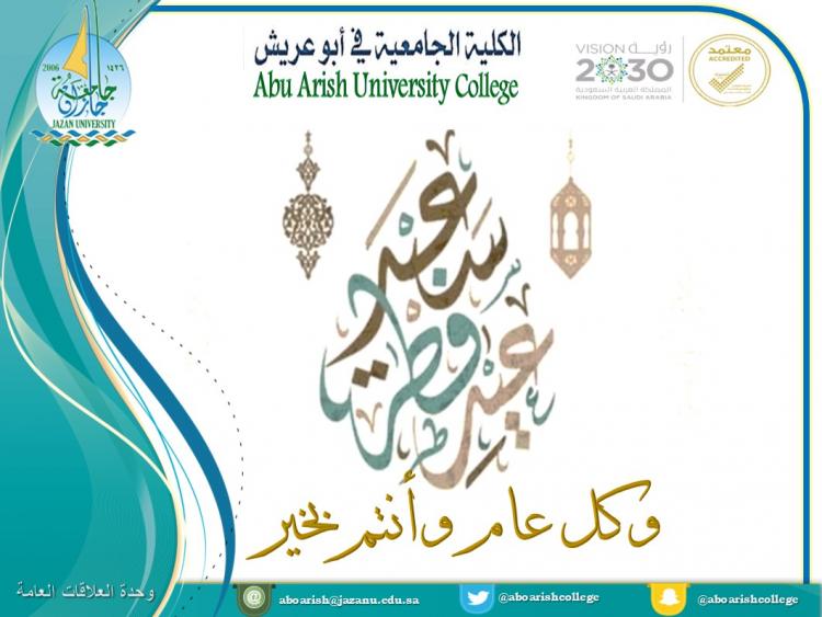 الكلية الجامعية بأبي عريش تعايد منسوبيها بمناسبة عيد الفطر المبارك 1443هـ