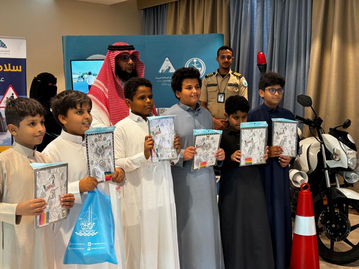 و معلومات و شرح مُفصل للزوار عن تطبيق السلامة المرورية في مرافق الجامعة.