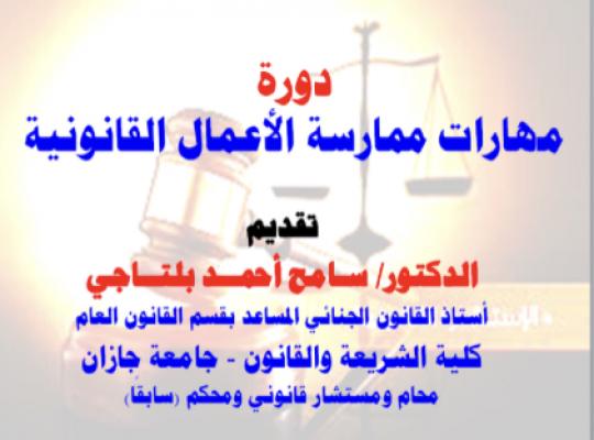 جامعة جازان: إدارة الإعلام نفذت وحدة الجودة والاعتماد الأكاديمي دورة تدريبية بعنوان مهارات ممارسة الأعمال القانونية ، قدمها الدكتور سامح أحمد بلتاجي عضو هيئة التدريس بكلية الشريعة والقانون تناولت فيها التعرف على مفهوم وأنواع الأعمال القانونية ومعرفة