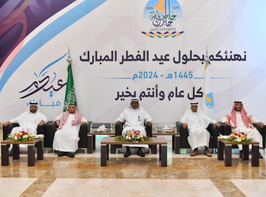 جامعة جازان: إدارة الإعلام رعى سعادة رئيس جامعة جازان المكلف الأستاذ الدكتور محمد بن حسن أبو راسين حفل معايدة منسوبي الجامعة بحضور أعضاء مجلس الجامعة، وأعضاء هيئة التدريس والموظفين، صباح اليوم في بهو البرج الجامعي. ورفع الدكتور أبو راسين أسمى التهاني