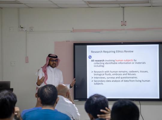اقامت كلية طب الأسنان يوم الأحد الموافق 10 / 3 / 2024 ممثلة في وحدة التدريب والتطوير المهني محاضرة بعنوان “Research Bio Ethics" قدمها الدكتور وائل عوض مشرف وحدة البحث العلمي بالكلية تحدث فيها عن: الأخلاقيات التي لا بد أن يأخذها الباحث بعينالإعتبار