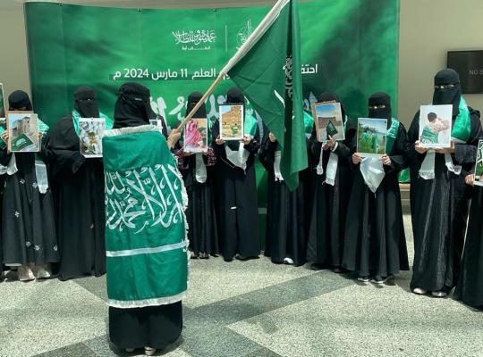 جامعة جازان: إدارة الإعلام نظمت كلية التصميم والعمارة بجامعة جازان ممثلة في وحدة الأنشطة الطلابية "مسيرة وطنية احتفاء بيوم العلم السعودي" بمجمع الطالبات بمحلية وقد سطر طالبات ومنسوبي الكلية المسيرة حاملين سارية العلم السعودى وأعمال فنية إبداعية تعكس