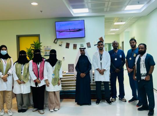 جامعة جازان: إدارة الإعلام احتفى منسوبي المستشفى الجامعي بيوم تأسيس المملكة العربية السعودية بقسم المختبر وذلك بتجهيز ركن تثقيفي تم من خلاله عرض فيلم وثائقي عن تأسيس المملكة بالإضافة إلى توزيع عدد من الهدايا على المرضى المراجعين بهذه المناسبة الغالية