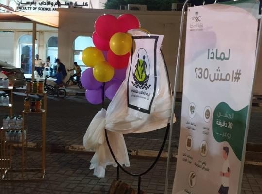 أقامت الكلية الجامعية بفرسان ممثلة في وحدة خدمة المجتمع تحت رعاية سعادة عميدة الكلية الدكتورة عفاف بنت محمد بابعير وإشراف وكيلة الكلية للشؤون الأكاديمية الدكتورة عيش يحيى مدخلي ورئيسة وحدة خدمة المجتمع الدكتورة سارة المالكى فعالية اليوم العالمي للمشي