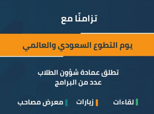جامعة جازان: إدارة الإعلام أقامت جامعة جازان ممثلة في عمادة شؤون الطلاب شطر الطالبات احتفالاً بمناسبة اليوم العالمي للتطوع ببهو المجمع الأكاديمي بمحلية برعاية وكيلة عمادة شؤون الطلاب شطر الطالبات الدكتورة رشا مشهور وحضور الإداريات والطالبات. وشهدت