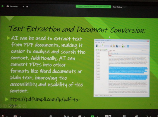 أقامت وحدة التعليم الإلكتروني في الكلية الجامعية بالداير ورشة عمل إلكترونية حول "الذكاء الاصطناعي في التعامل مع ملفات PDF والصوت" لأعضاء هيئة التدريس بتاريخ 25/10/2023 قدمتها الدكتورة اروسا عضو وحدة التعليم الإلكتروني في الكلية. وبدأت الورشة باستعراض