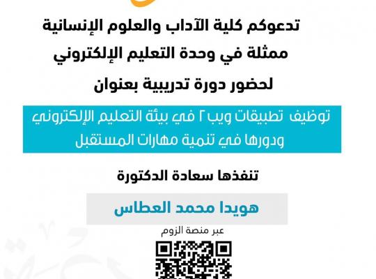جامعة جازان: إدارة الإعلام أقامت وحدة التعليم الإلكتروني بكلية الآداب والعلوم الإنسانية شطر الطالبات دورة بعنوان: توظيف تطبيقات ويب ٢ في بيئة التعليم الإلكتروني ودورها في تنمية مهارات المستقبل من إعداد وتقديم الدكتورة هويدا العطاس، المحاضرة بقسم