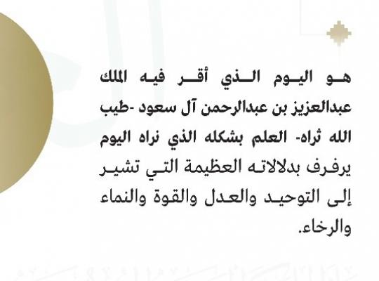 يعد العلم رمزًا لسيادة الوطن وعزته وكرامته، ورمزًا لولاء الشعب لقيادته ووطنه، كما يجسد لعلم الوطني للمملكة العربية السعودية مفهوم الدولة، ويعبر عن الوحدة الوطنية والعمق التاريخي لها، كما يعبر عن الشموخ والعزة والمكانة والكرامة، والمبادئ التي تقوم