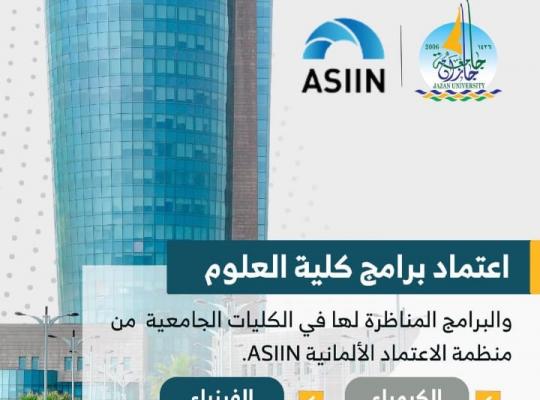 تهنئ كلية العلوم جميع منسوبيها وطلابها وطالبتها بمناسبة اعتماد جميع برامج كلية العلوم من هيئة الاعتماد الألمانية ASIIN