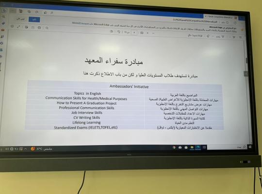 جامعة جازان: إدارة الإعلام تواصلت فعاليات برنامج تهيئة الطلبة المستجدين للعام الجامعي 1445هـ بالتعاون مع عمادة شؤون الطلاب شطر الطالبات نفذ معهد اللغة الانجليزية ورشة عمل تحدثت عن المعهد وبرامجه وأنشطته وفعالياته وأبرز مبادراته قدمتها الأستاذة أميرة
