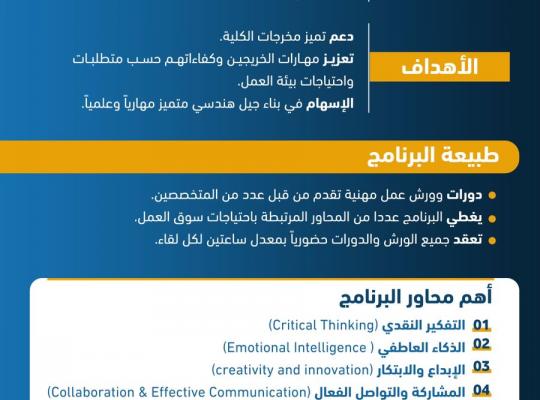جامعة جازان: إدارة الإعلام نفذت كلية الهندسة بجامعة جازان برنامج تنمية المهارات الناعمة في نسخته الرابعة والذي يهدف إلى تنمية مهارات الطلاب وتطويرها بما يحقق تميز مخرجات الكلية ويعزز فرصهم في سوق العمل. وأوضح عميد كلية الهندسة الدكتور أحمد بن الحسن