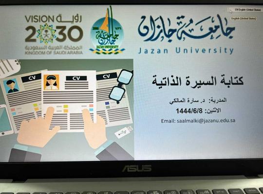 أقامت الكلية الجامعية بفرسان ممثلة في وحدة الإرشاد الاكاديمي برعاية عميدة الكلية الدكتورة عفاف محمد با بعير وإشراف وكالة الكلية للشؤون الأكاديمية دورة بعنوان: كيفية كتابة السيرة الذاتية على مسرح الكلية مستهدفة الطالبات بجميع الأقسام، أعدتها الدكتورة