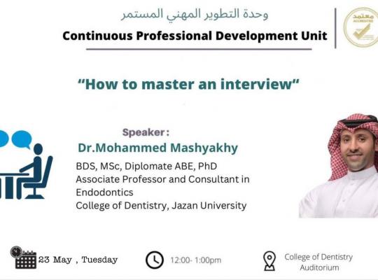 ضمن سلسلة محاضرات وحدة التطوير المهني المستمر ، قدم طلاب و طالبات الامتياز يوم الثلاثاء 23 مايو ، محاضرتين كانت الأولى بعنوان “Deep marginal elevation " تم فيها شرح احدى الطرق العلاجية الحديثة لعلاج آفات الاسنان الجانبية العميقة . و جاءت الثانية
