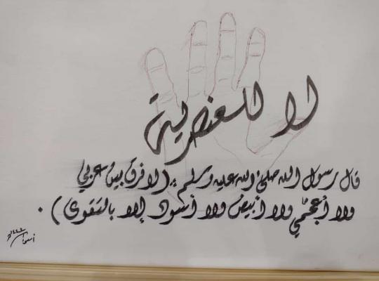 جامعة جازان: إدارة الإعلام تحت شعار ( الإسلام ونبذ التطرف والعنصرية) أقامت كلية الآداب والعلوم الإنسانية (شطر الطالبات) معرضا للوحات فنية وابداعات للخط العربي تعبر عن الفكرة المطروحة ،وأقيم المعرض برعاية وكيلة الكلية د. غادة ذبالي تحت إشراف وحدة