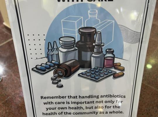 جامعة جازان: إدارة الإعلام أقامت كلية الصيدلة ممثلة في وحدة خدمة المجتمع بقسم علوم الأدوية والسموم لشطر الطالبات، فعالية توعوية بالمضادات الحيوية، تحت شعار (تعامل مع المضادات الحيوية بحرص) برعاية وكيلة الكلية لشطر الطالبات د. مروة قدري وحضور جميع