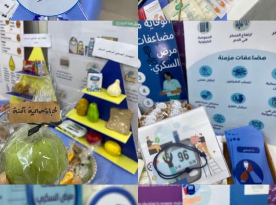 جامعة جازان: إدارة الإعلام نقذ قسم التمريض في الكلية الجامعية بالداير فعالية عن اليوم العالمي لمرض السكري اشتملت على أركان تعريفية بأعراض وعلامات المرض وكيفية العلاج والوقاية من مضاعفات السكر والوقاية والغذاء الصحي وركن عن الأنشطة الرياضية وأهميتها