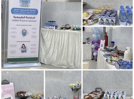 برعاية كريمة من سعادة عميدة الكلية الجامعية بمحافظة الداير د. تنوير احمد هندي نفذت شعبة صحة المجتمع بقسم التمريض ممثلة في طالبات المستوي الحادي عشر وتحت إشراف د. سعاد النصري. د. اماني عوض الكريم وبالتعاون مع مركز صحي بني مالك فعالية عن الرضاعة
