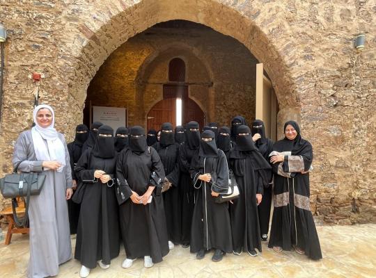 زيارة طالبات كلية التصميم و العمارة قسم التصميم الداخلي مقرر ( تاريخ العمارة و الفن 2) للقلعة الدوسرية بجازان للتعرف على طرازها التراثي و تفاصيل الفراغات المعمارية و خامات البناء لها و الوقوف على أهمية المباني التراثية و كيفية الحفاظ عليها حيث كان