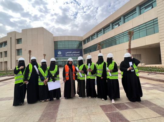 تحت اشراف أستاذة المقرر م.فائقة مجذوب احمد تم زيارة ميدانية لطالبات مقرر طرق البناء لمبانى المستشفى الجامعى ومبانى كلية الطب حيث كان عدد الطالبات ١٠ طالبات وقام فريق من مهندسين الاداره الهندسية جامعة جازان وعلى راسهم المهندس المدنى اصيل عوض بالتعريف