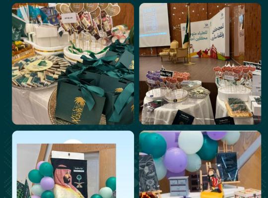 احتفت كلية الفنون والعلوم الانسانية شطر الطالبات باليوم الوطني الخامس والتسعون بحضور وكيلة الكلية الدكتورة فاطمة محمد بريك وبمشاركة منسوبات الكلية والطالبات وذلك على مدار يومين بمقر المجمع الأكاديمي٢ ومجمع محلية للطالبات، حيث اتسمت الاحتفالات بروح