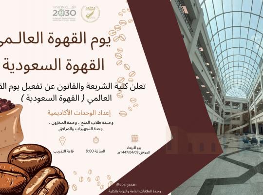 نفذت الهيئة الإدارية بكلية الشريعة والقانون شطر الطالبات فعالية اليوم العالمي للقهوة ( القهوة السعودية) حيث تعتبر القهوة رمز اجتماعي وثقافي، فهي وسيلة للقاءات العائلية، وركيزة لاجتماعات العمل، ورفيق للطلاب والمبدعين في ساعات التركيز والإلهام. وهذا