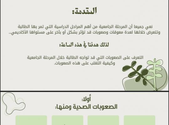 جامعة جازان: إدارة الإعلام عقدت كلية الآداب والعلوم الإنسانية ممثلة في وحدة الإرشاد الأكاديمي بشطر الطالبات دورة بعنوان "الصعوبات التي تواجه طالبات الجامعة وكيفية التغلب عليها " قدمتها أ. منى على عثمان المحاضر بقسم الصحافة والإعلام. اشتملت الدورة على