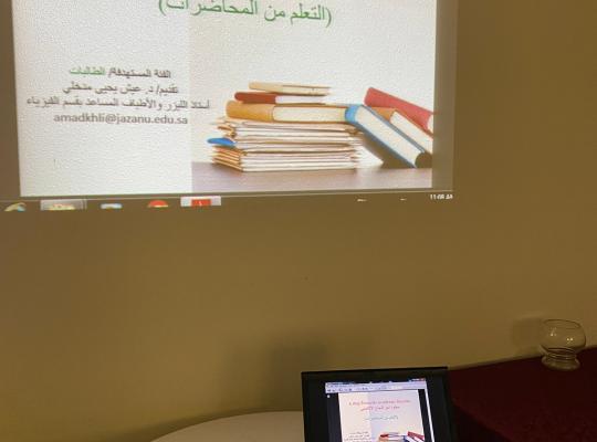 جامعة جازان: إدارة الإعلام أقامت الكلية الجامعية بفرسان ممثلة في وحدة الأنشطة الطلابية برعاية عميدة الكلية الدكتورة عفاف محمد با بعير دورة بعنوان خطوة نحو النجاح الأكاديمي (التعلم من المحاضرات) قدمتها مساعد رئيس قسم الفيزياء بكلية العلوم ـ جامعة