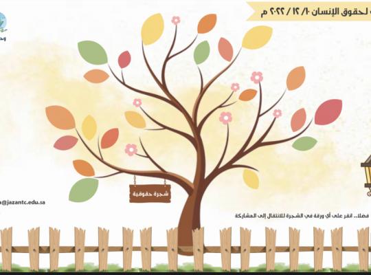 جامعة جازان: إدارة الإعلام شاركت كلية الشريعة والقانون في تفعيل اليوم العالمي لحقوق الإنسان ٢٠٢٢؛ من خلال ملف تفاعلي؛ تضمن ٢١ مشاركة من عدد من أساتذة الكلية وطلابها. وتناولت المشاركات مجالات متعددة أبرزها المملكة العربية السعودية وحقوق الإنسان، حقوق