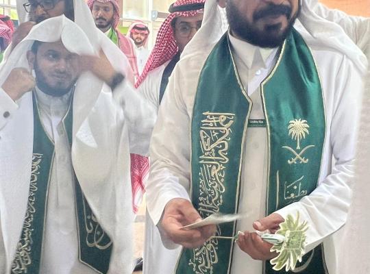 نظّمت كلية الشريعة والقانون بإشراف وكالة الكلية للشؤون الأكاديمية احتفالًا بمناسبة اليوم الوطني الخامس والتسعين للمملكة العربية السعودية، بحضور وتفاعل منسوبي الكلية وطلابها. وقد تميز الحفل بروح وطنية عالية، وأركان إبداعية متجددة، وعرض مرئي مميز، عكس