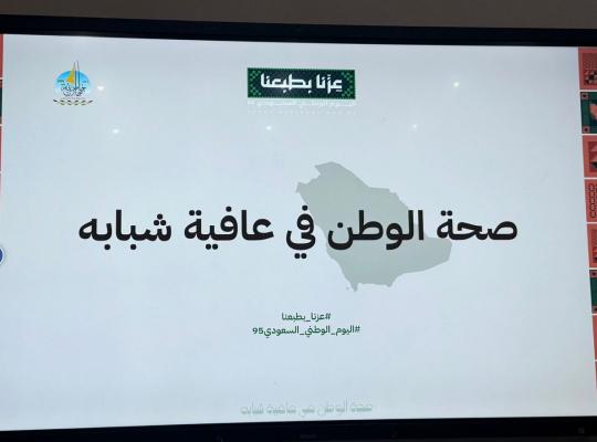 نظم قسم العلوم الطبية ممثلا ببرنامج التمريض في الكلية الجامعية بالداير مبادرة بعنوان " صحة الوطن في عافية شبابه" , وذلك ضمن برامج الاحتفاء باليوم الوطني السعودي الـ95، برعاية عميدة الكلية وحضور وكيلة البحث والتطوير، ونخبة من أعضاء هيئة التدريس،