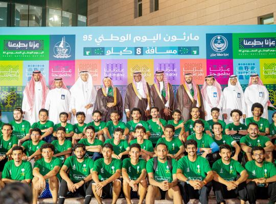 توّج رئيس جامعة جازان، الأستاذ الدكتور محمد بن حسن أبوراسين، الفائزين في سباق الماراثون الذي نظّمته الجامعة، ممثّلةً بعمادة شؤون الطلاب، ضمن احتفالات الجامعة بذكرى اليوم الوطني الـ95 تحت شعار "عزّنا بطبعنا"، وذلك أمام البرج الإداري بالمدينة الجامعية