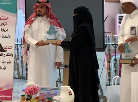 تكريم جامعة جازان ممثلة بالمستشفى الجامعي بمناسبة مشاركتها بالحملة التوعوية عن سرطان الثدي والذي نفذ بالشراكة بين ادارة تعليم صبيا وصحة جازان ممثلة بمستشفى صبيا العام. حيث شاركت الجامعة بركن توعوي وتثقيفي بالمعرض المصاحب، ومحاضرة عن (المستجدات لسرطان