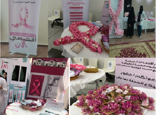 أقام قسم الأشعة فعالية تثقيفية للتوعوية بسرطان الثدي وأهمية الفحص المبكر وقد تم فحص السيدات الرغبات في اجراء الفحوصات وتزويدهم بمنشورات توعوية عن أهمية المتابعة والفحص بشكل دوري. وأشارت المشرفة على الفعالية د. ندى العميري الأشعة بإن القسم ومن خلال