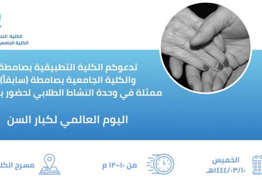 جامعة جازان: إدارة الإعلام تزامناً مع اليوم العالمي لكبار السن، نفذت الكلية التطبيقية بصامطة فعالية مثرية لتسليط الضوء على الدور المهم والحيوي لكبار السن، وما قدموه من إسهامات لخدمة الوطن والمجتمع وذلك من خلال التركيز على أهداف اليوم العالمي لكبار
